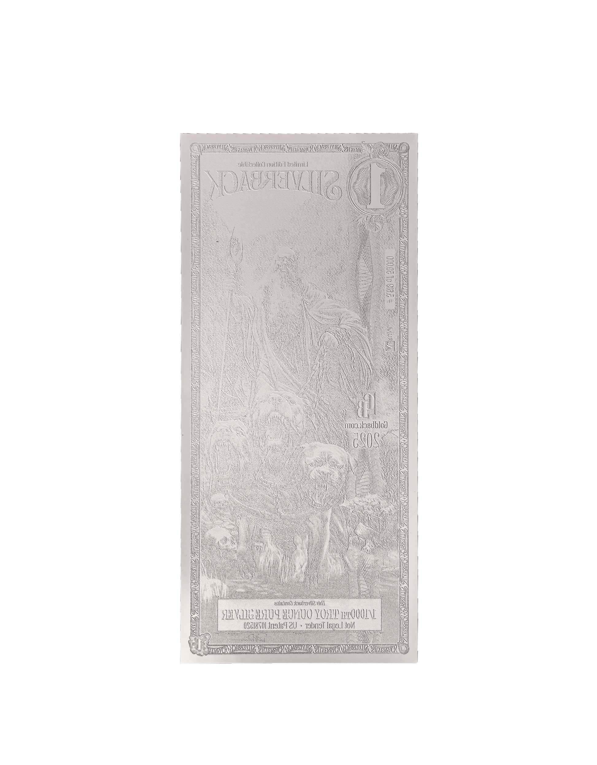 The Silverback Note is a groundbreaking advancement in silver-based currency, developed through years of technical innovation. Designed to combat tarnish and oxidation, each Silverback is a durable, flexible silver note that retains its brilliant luster without the need for polishing or special storage. Backed by vacuum deposition technology and a patented polymer seal, this note bridges beauty, utility, and modern bullion.